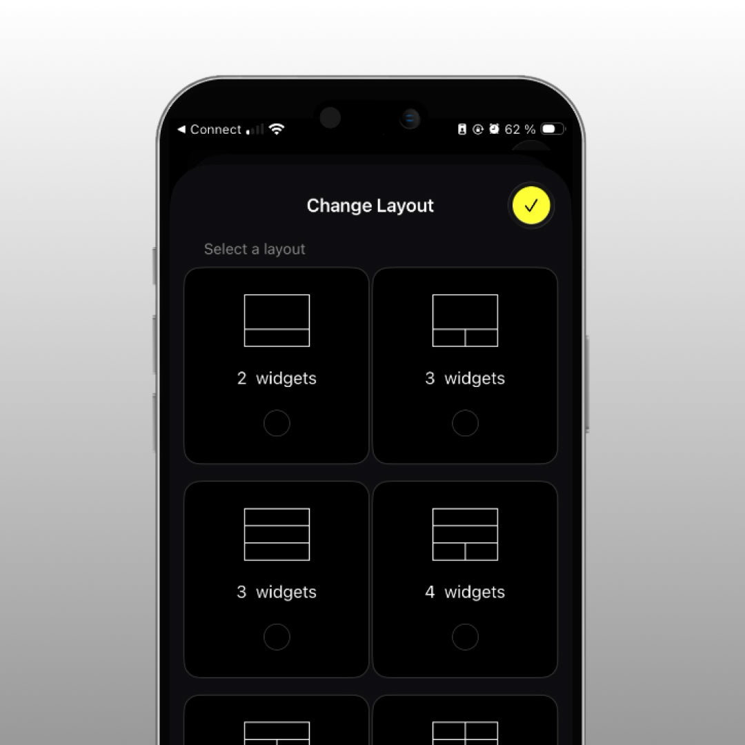 Choose how many widgets you want on your screen — up to 6 per screen.