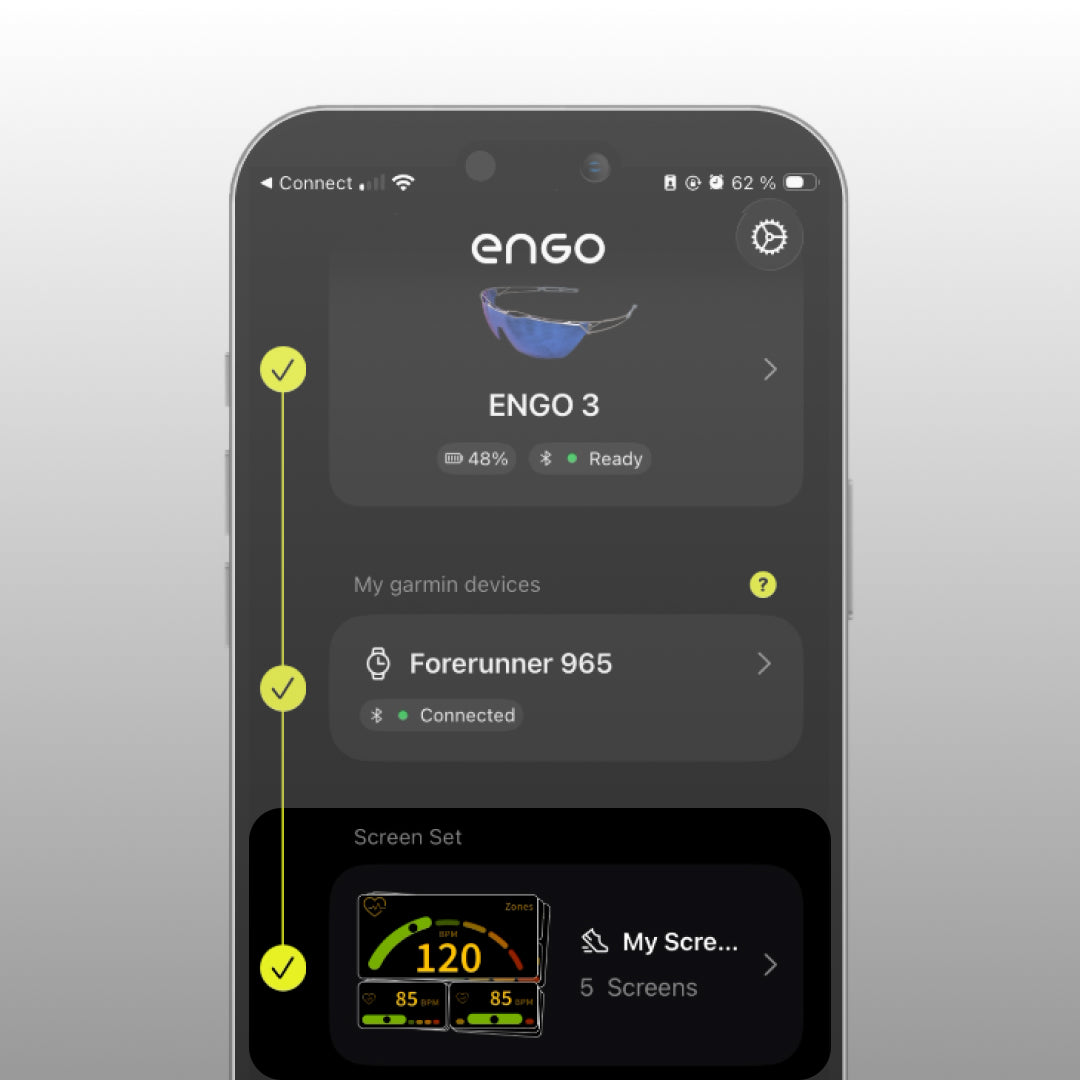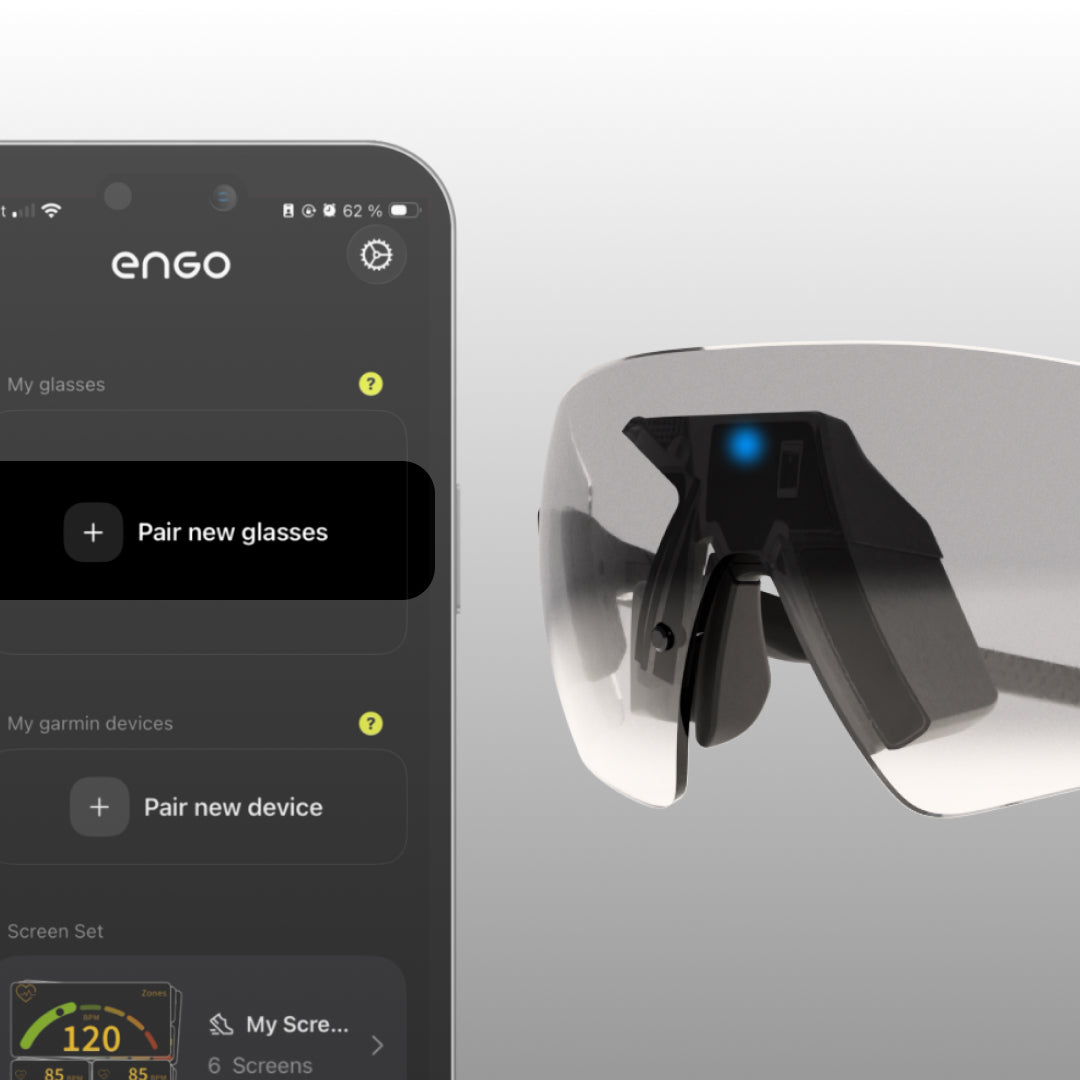 Your Garmin is now connected to your engo3 glasses. Start a run on your watch to see the data appear in your glasses.