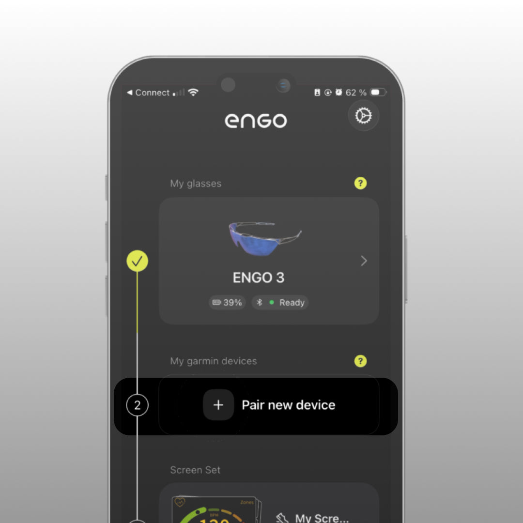 Tap "Ready." The Bluetooth connection between your phone and the engo glasses will stop to let the Garmin connect to the glasses.