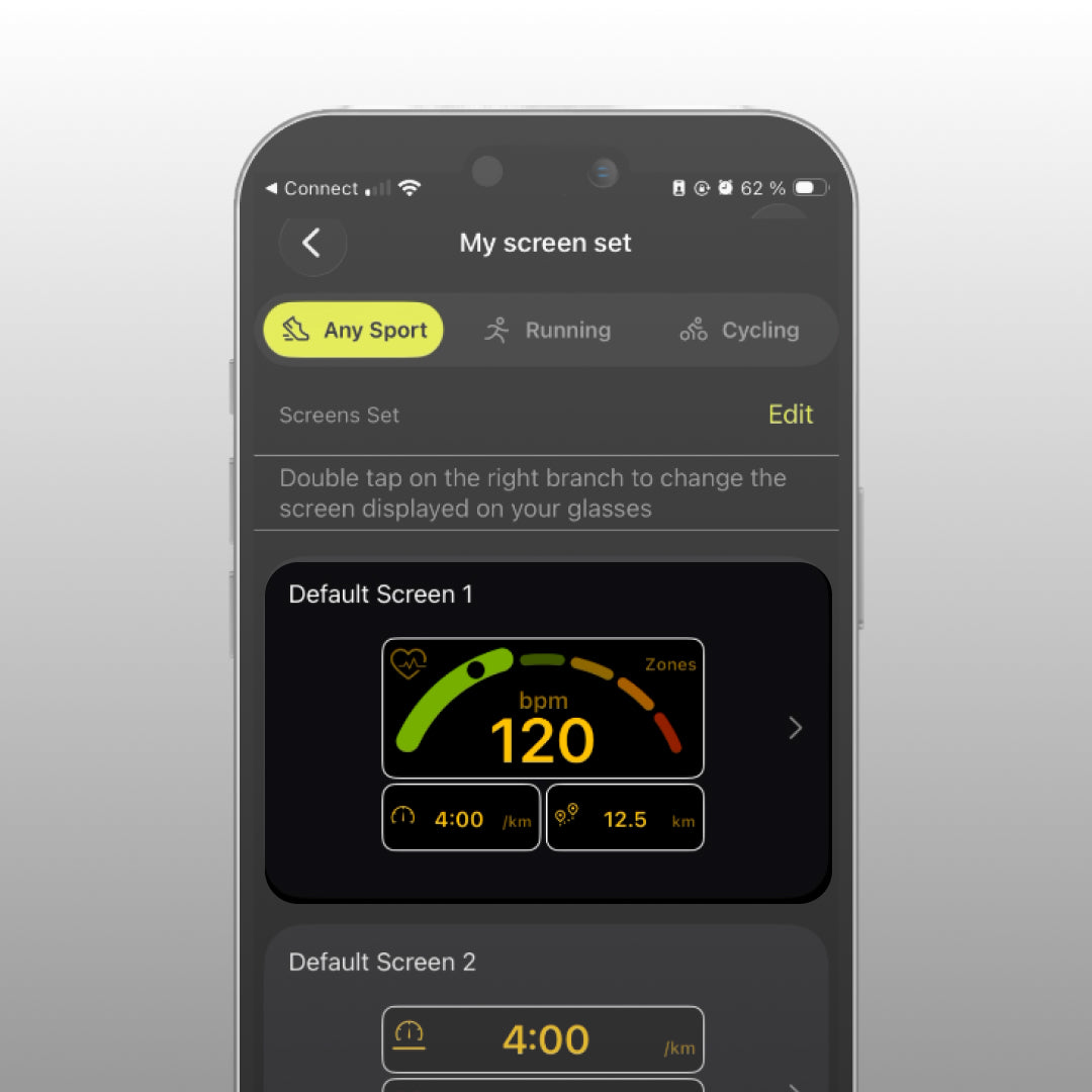 Not sure which data suits you best? Start with the default screens to get a feel for the glasses. You can always customize later.